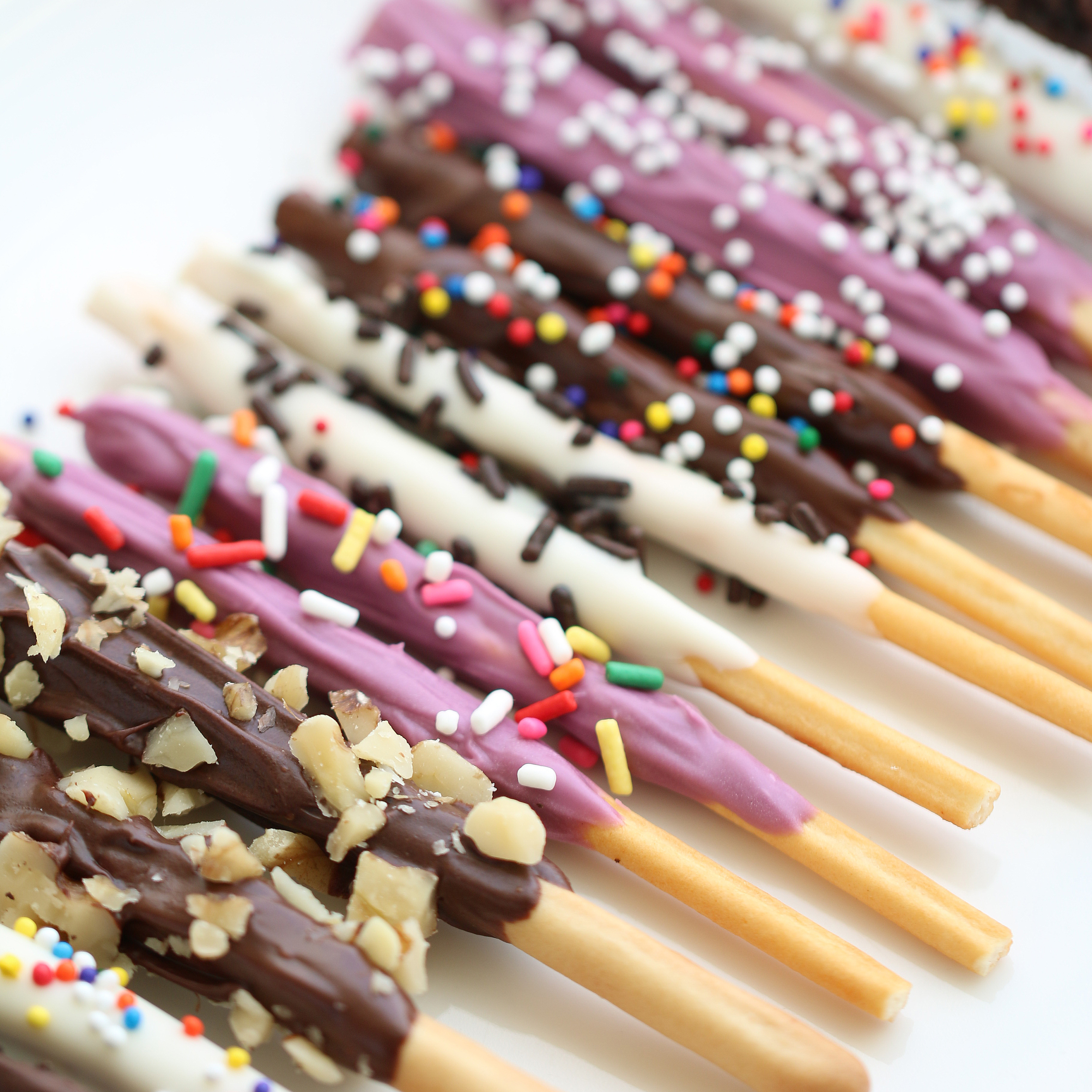 And cover a pocky with melted chocolate. Today I use Pepero and stick-snacks. And decorate your pepero. You can decorate with chopped walnuts and Oreos. And also Wilton confettis work great.