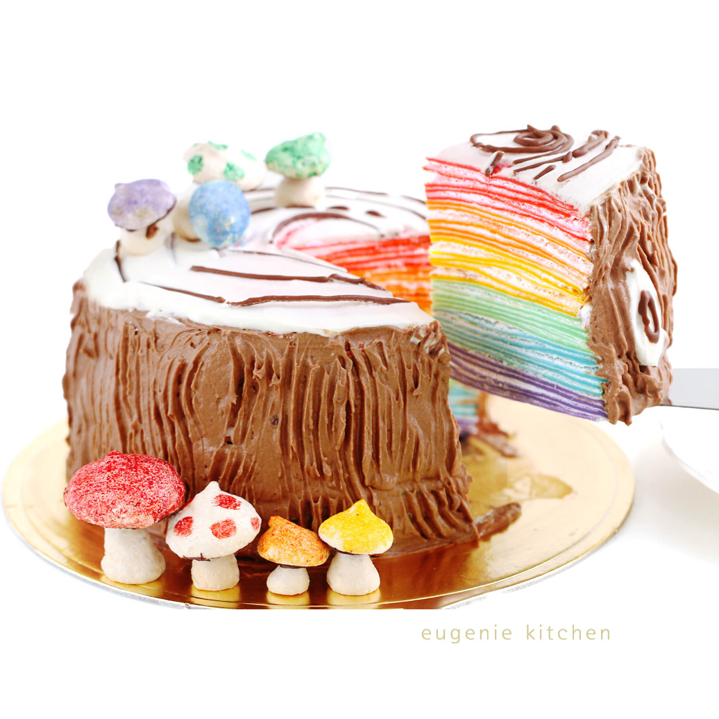 Recipe by Eugenie Kitchen at https://eugeniekitchen.com/christmas-rainbow-mille-crepe-cake/